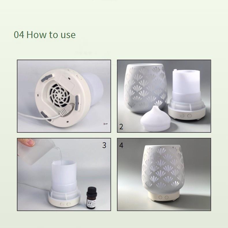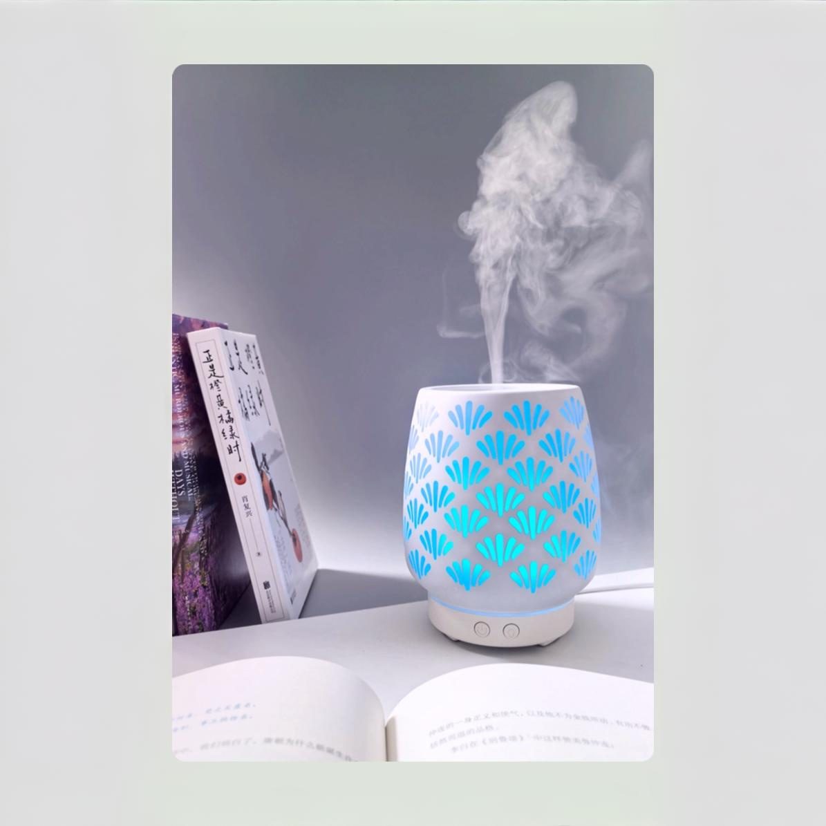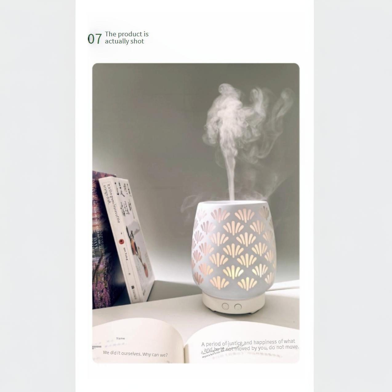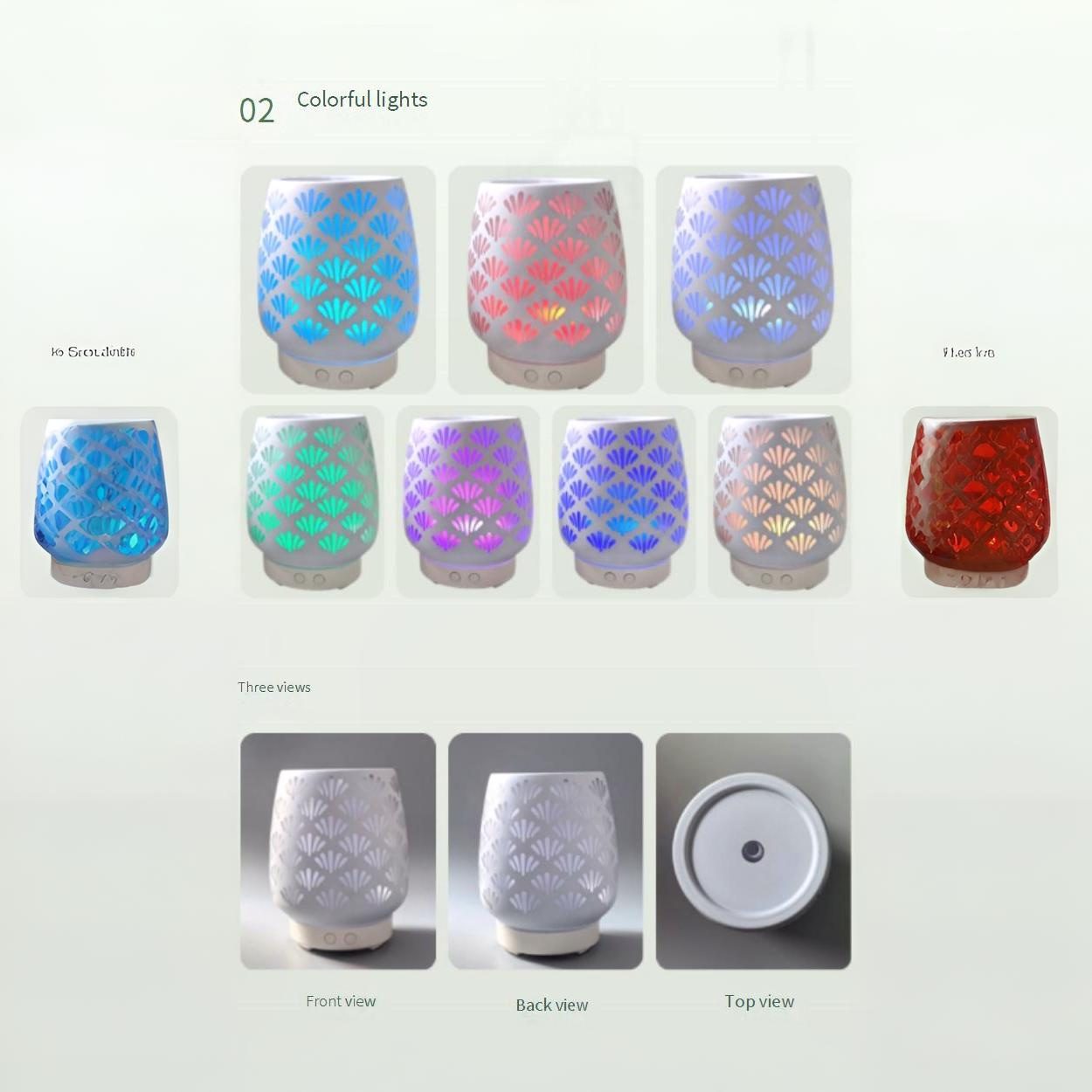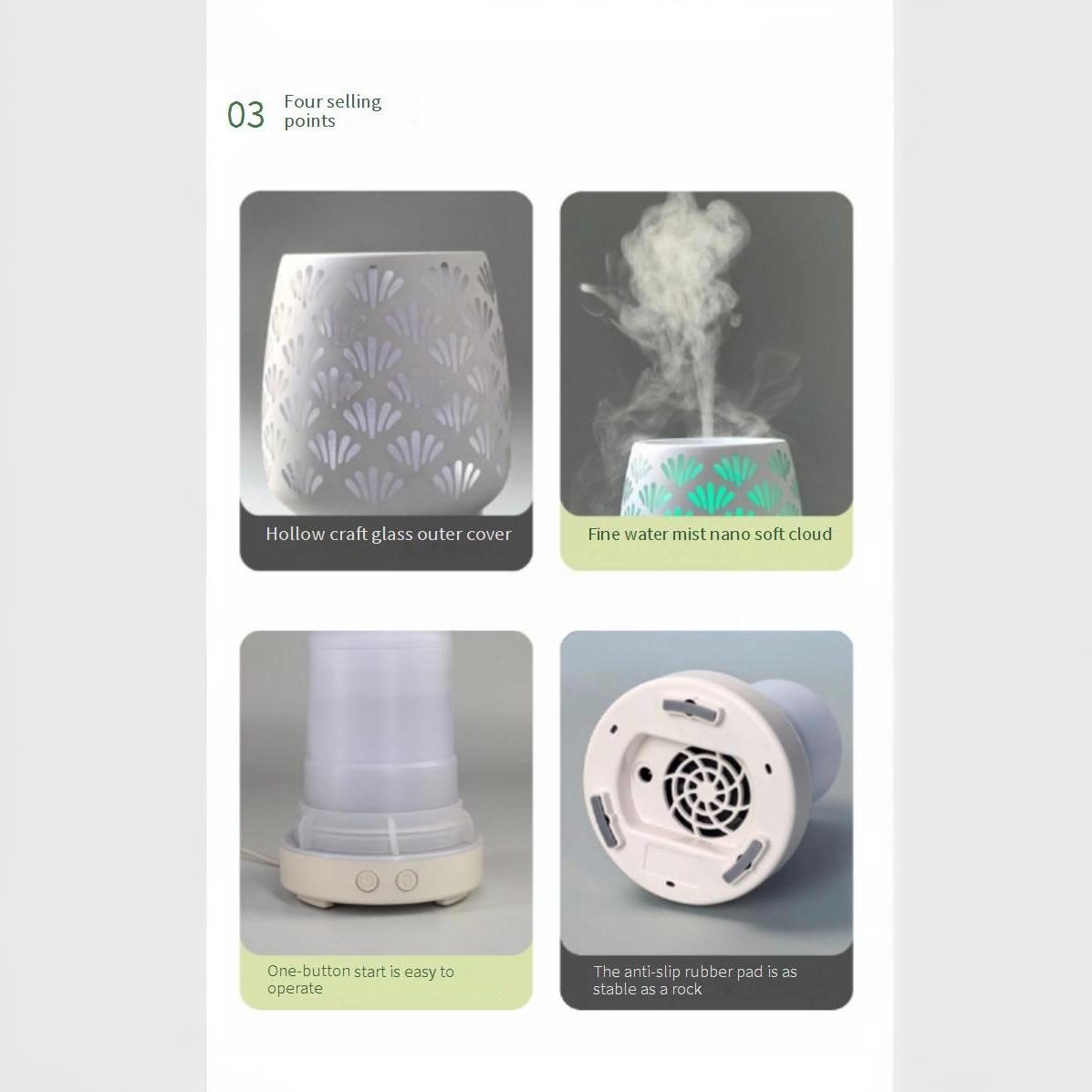 Crafted with a hollow-cut glass outer cover, this ultrasonic diffuser doubles as a cool-mist humidifier. It casts a soft patterned glow while dispersing essential oils—quiet, elegant, and ideal for bedrooms, offices, and spa corners.